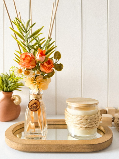 Kit Difusor Jardim Torrecota 100ml + Embalagem exclusiva em tecido +Vela Rústica 200g