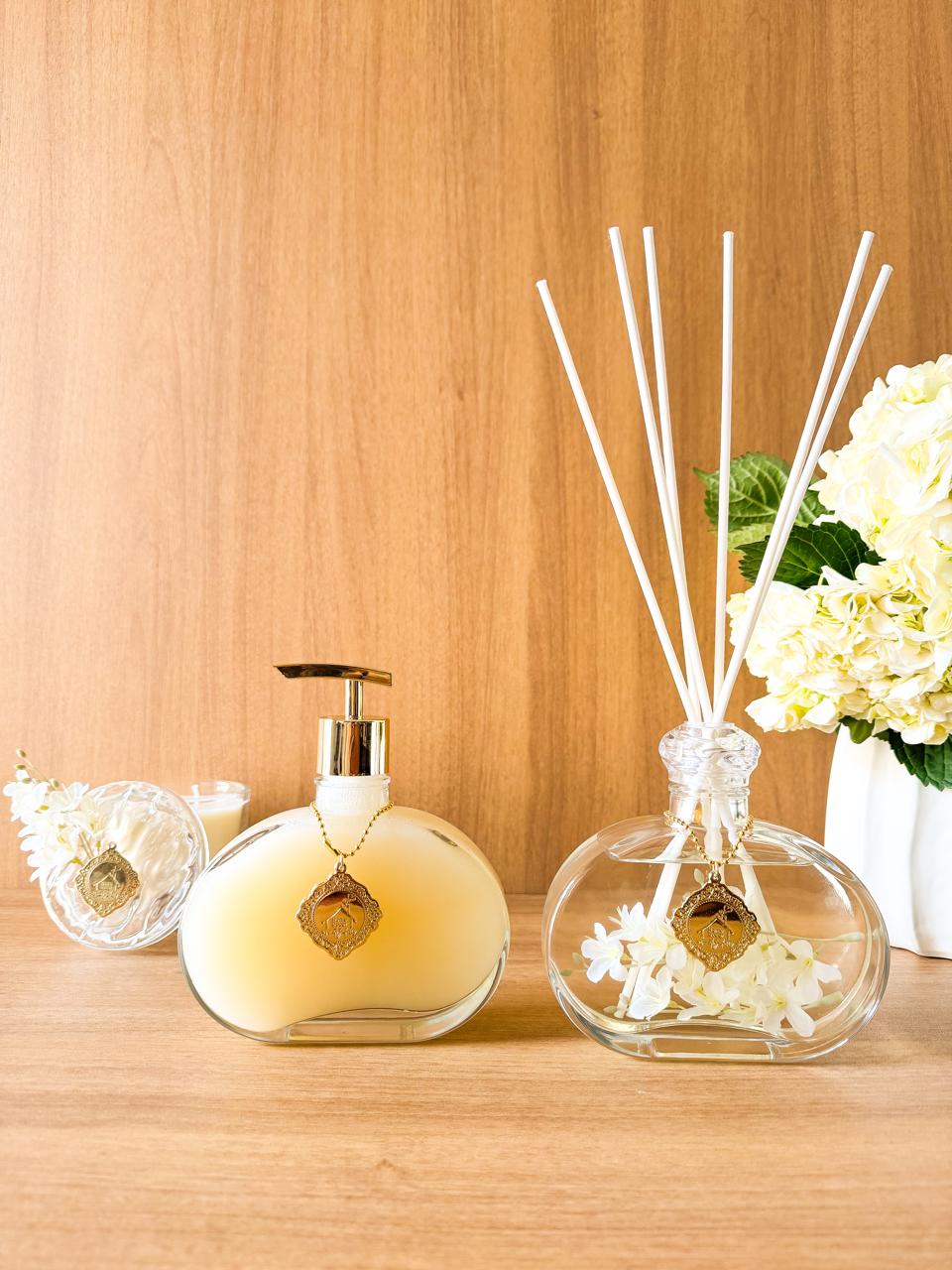 Transforme o seu lavabo com a elegância do Kit Lavabo Verbena Home. Este conjunto exclusivo não apenas perfuma delicadamente o ambiente, mas também adiciona um toque de sofisticação à sua decoração. Inclui uma bandeja de vidro com um design orgânico moderno, perfeito para deixar seu lavabo totalmente perfumado e com estilo.