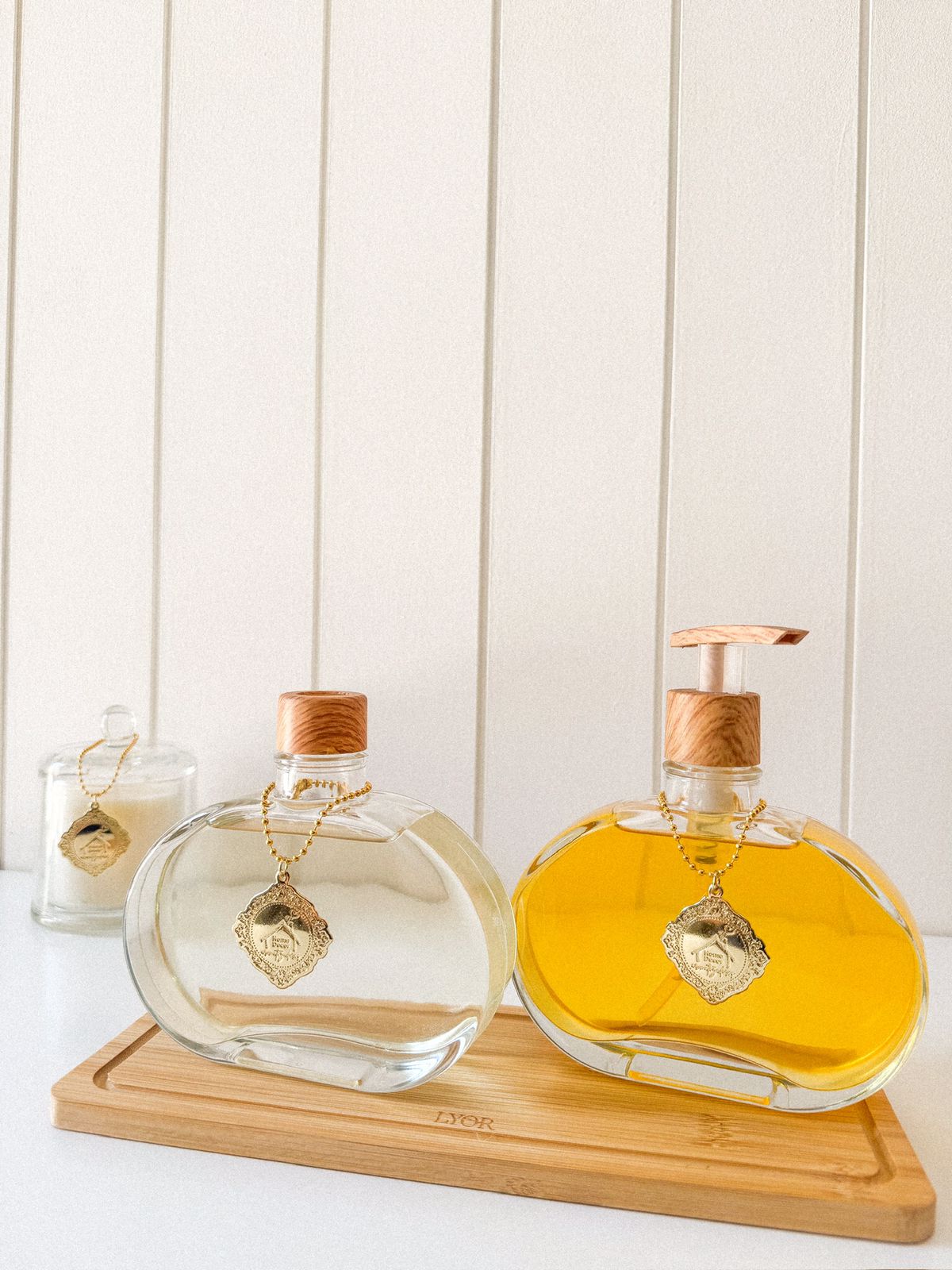 • 1 Porta Sabonete Líquido (300ml) – disponível nas fragrâncias conforme o estoque.
