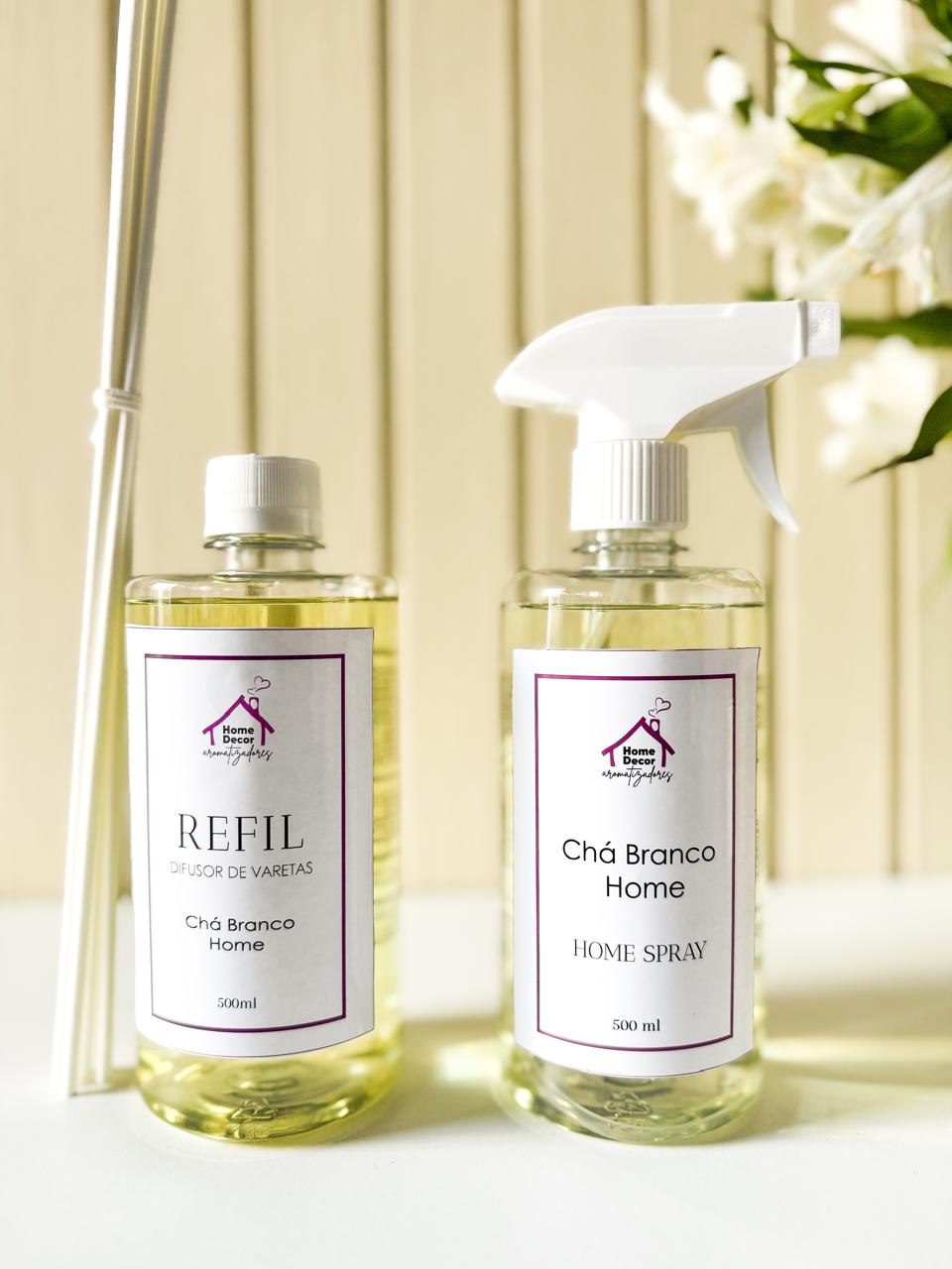 Kit Home Spray 500ml + Refil 500ml – Aroma Chá Branco Home